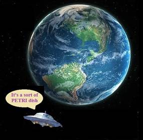 Therefore, earth is a sort of Petri dish, i.e. a container in which cultures grow.